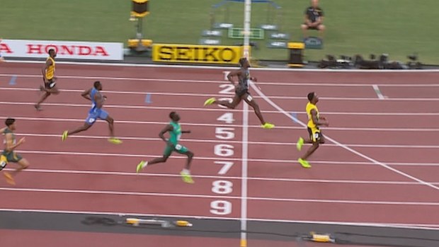 Jamaica’s Bryan Levell won the heat with a time of 19.84 seconds.