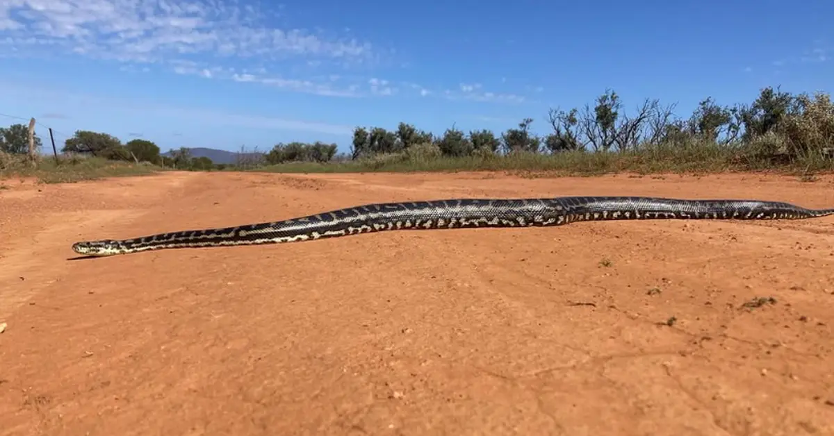 In a rare sighting, a massive python was spotted at a national park in South Australia’s northern Eyre Peninsula.