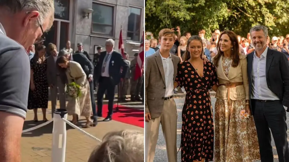Queen Mary was stung by a wasp while greeting members of the public with King Frederik X and their children, Princess Isabella, 18, and Prince Vincent, 14. Credit: Tiktok/Instagram.