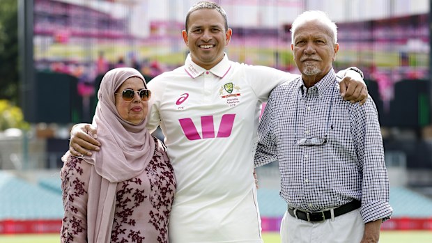 Usman Khawaja with family before the SCG Test.  Getty