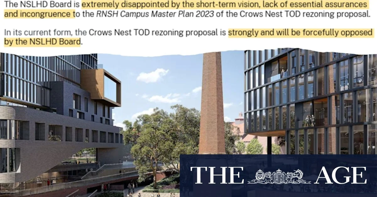 “The NSLHD Board is extremely disappointed by the short-term vision … of the Crows Nest TOD rezoning proposal,” the submission read. “[These] matters are considered non-negotiable from the perspective of the NSLHD Board … to disregard them will adversely affect the delivery of health services at RNSH and will be detrimental to the community served by RNSH.”