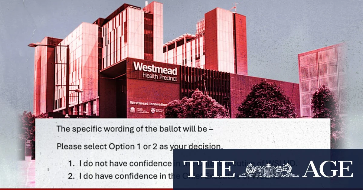 Doctors at Westmead had not passed a no-confidence vote in more than 15 years. It is the busiest hospital in NSW by admissions, delivering more than 26,000 care episodes in the first three months of the year.